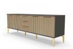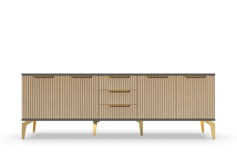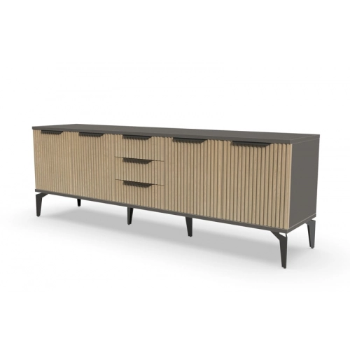 Тумба под телевизор длинная "Рейн" от фабрики Geona - это современное и практичное решение для вашей гостиной или гостевой комнаты. Она имеет несколько выдвижных ящиков и открытые полки для хранения различных предметов, включая телевизионную технику и аксессуары.