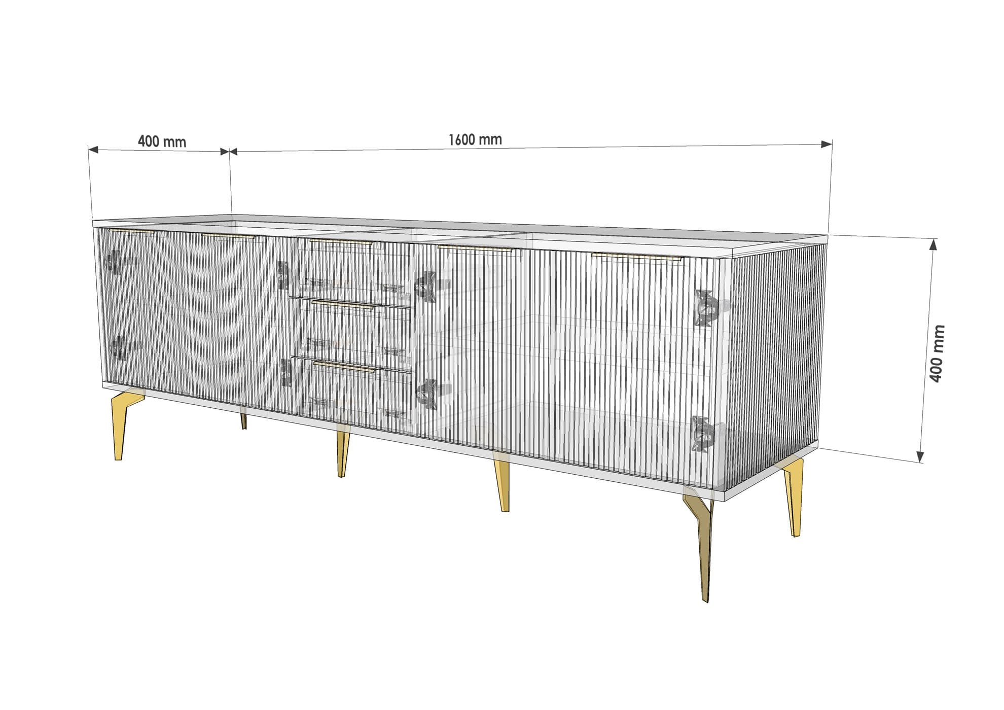 Тумба под телевизор "Рейн" является идеальным дополнением к любому современному интерьеру. Она имеет практичный дизайн, который позволяет хранить различные предметы и украшения, при этом оставаясь удобной и функциональной. Рифлёные поверхности придают тумбе уникальный и стильный вид, который будет выглядеть превосходно в вашей гостиной или гостевой комнате.