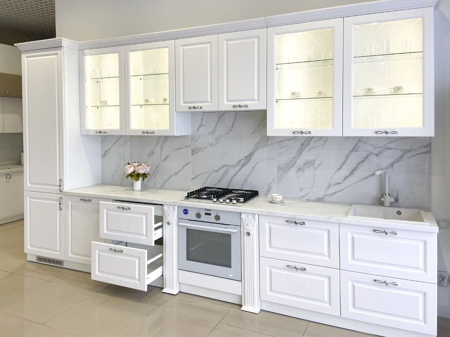 Кухонный гарнитур "Санремо" от GEONA обладает неповторимым шармом и притягательностью, которые добавят изыска и характера вашей кухне. Каждая деталь этой коллекции тщательно разработана с учетом последних тенденций дизайна и функциональности. Мы стремимся предложить вам идеальное сочетание стиля и практичности, чтобы ваша кухня стала местом, где собираются дорогие вам люди и создаются воспоминания.