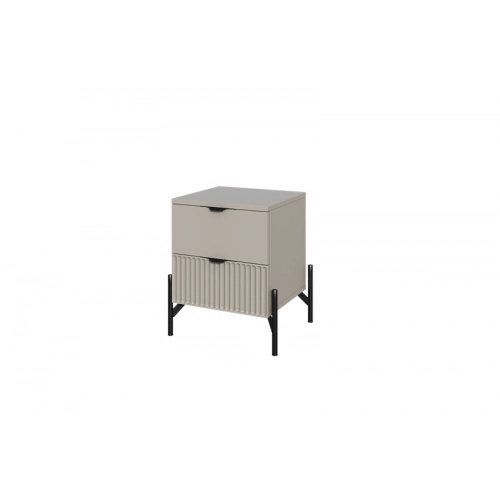 Прикроватная тумба «Нео» выполнена в современном минималистичном стиле с акцентом на строгую геометрию и выразительные детали. Декоративная рифлёная фасадная панель и изящные металлические опоры придают модели визуальную лёгкость и делают её актуальным элементом интерьера.